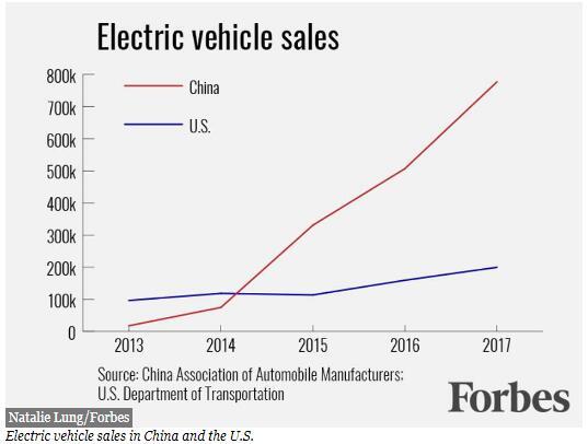 這就是中國真正領(lǐng)先的地方。它已率先開展了公共充電樁的大規(guī)模開發(fā),到2017年底已有214,000套。這些充電樁向每一個人開放,加上私人充電站就達到了232,000套。