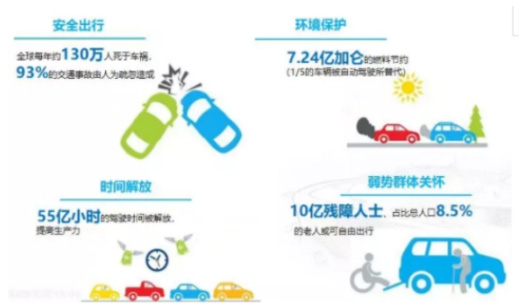 全球每年約130萬人死于車禍,93%的交通事故由人為疏忽所致。智能網聯(lián)和無人駕駛技術,將規(guī)避人力駕駛危險性,極大提升駕駛安全性上百萬條生命將幸免于難。