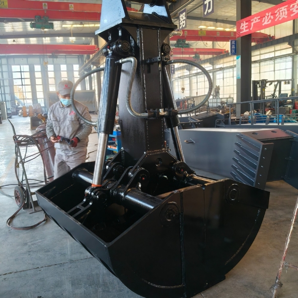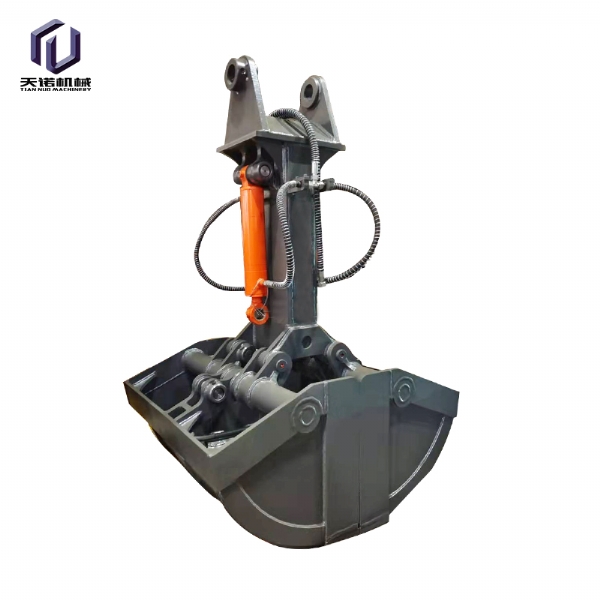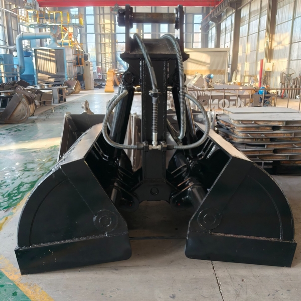 挖掘機(jī)貝型斗(也叫抓斗,哈殼斗)分為液壓回轉(zhuǎn)和不帶液壓回轉(zhuǎn)兩種。不帶液壓回轉(zhuǎn)的貝型斗采用挖掘機(jī)鏟斗油缸的油路,不用另外添加液壓閥塊及管路;帶液壓回轉(zhuǎn)的貝型斗要添加一套液壓閥塊及管路來控制,油缸配置活塞保護(hù)裝置。